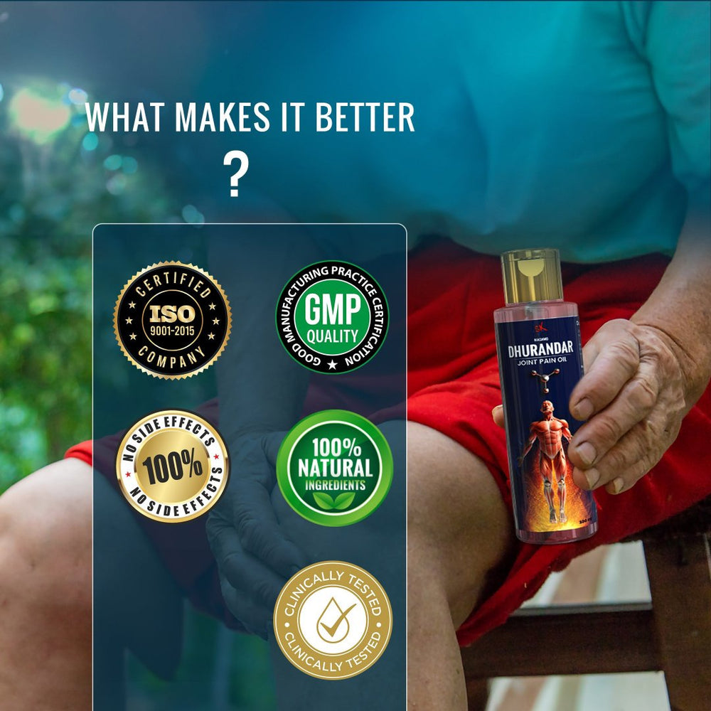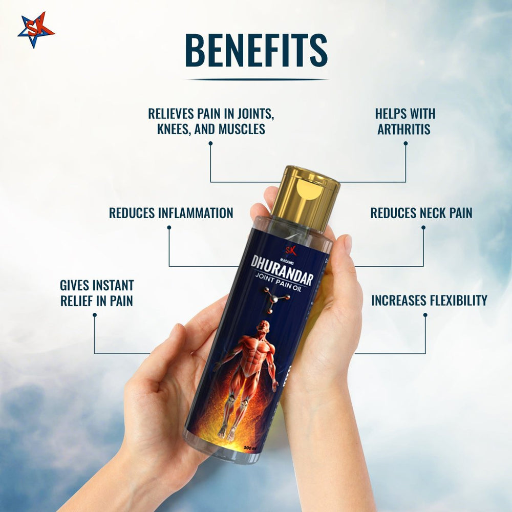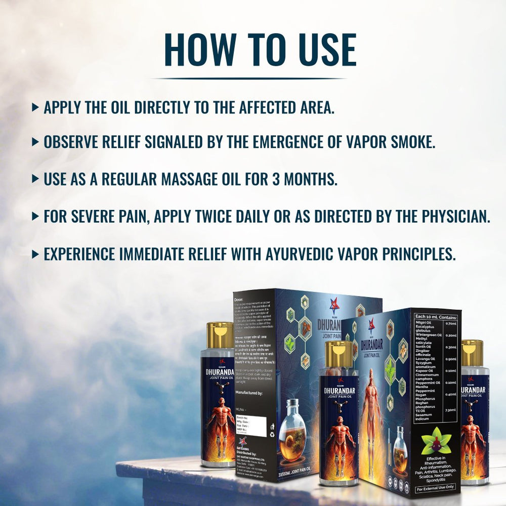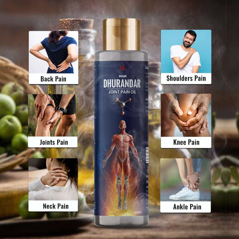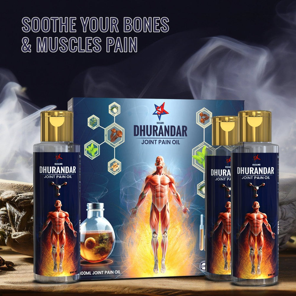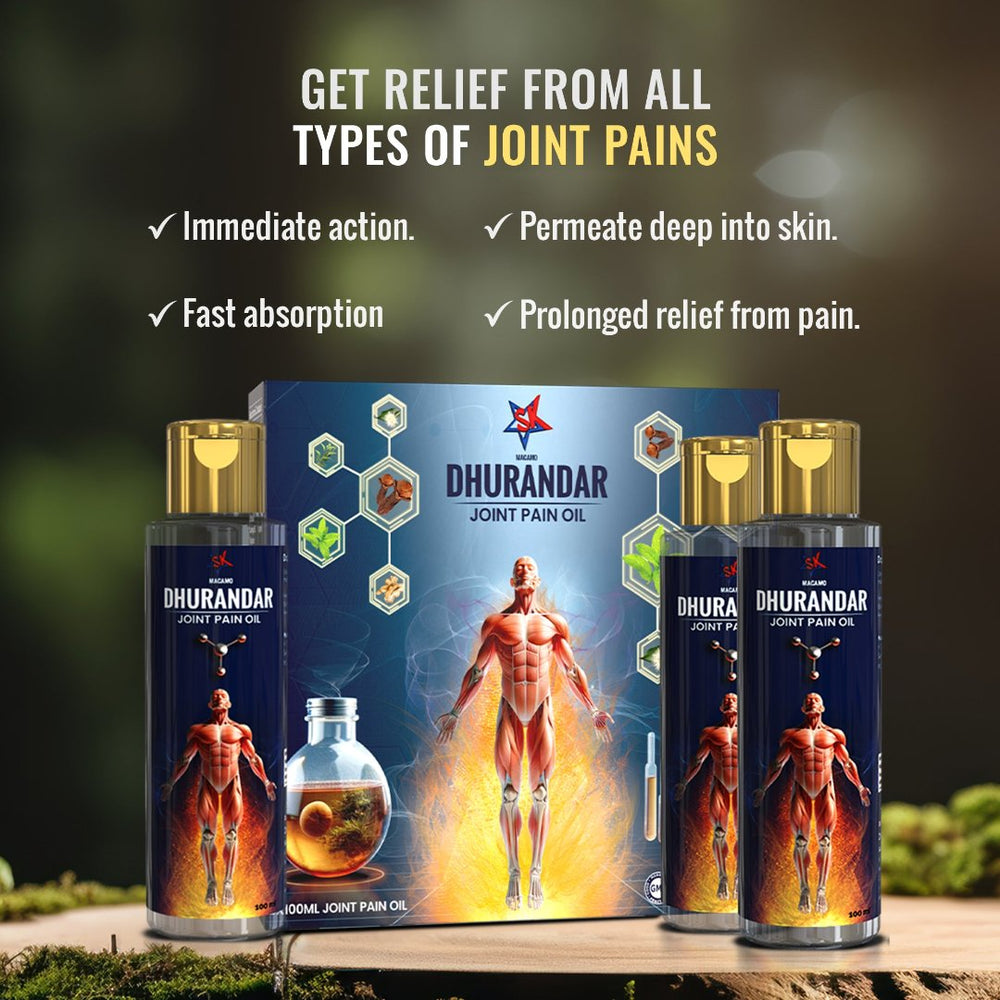 क्या आप लगातार जोड़ों के दर्द और असहजता से परेशान हैं? धुरंदर आयुर्वेदिक जॉइंट पेन ऑयल आपके लिए सबसे बेहतर समाधान साबित हो सकता है। यह एक आयुर्वेदिक तेल है जो जोड़ों और मांसपेशियों के दर्द से तुरंत राहत देने में मदद कर सकता है। इसकी अनोखी वाष्प क्रिया विधि , इसके युप्योग के तुरंत बाद राहत का अनुभव करा सकती है।