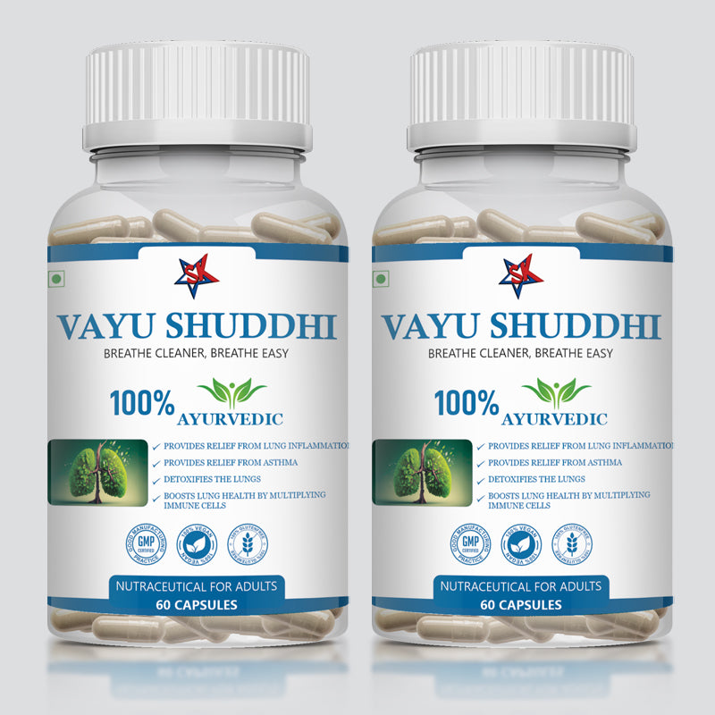 Vayu Shuddhi is specially formulated to address problems caused by smoking or pollution, containing herbs like ginger, vasaka, nettle, black pepper, and arjun bark.
